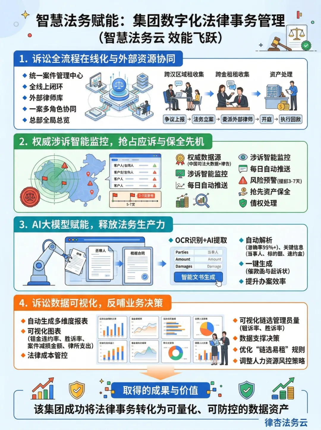 为了打破上述管理瓶颈,该集团引入了律杏法务云,构建了一套深度贴合设备租赁业务场景的法务数字化管理体系: